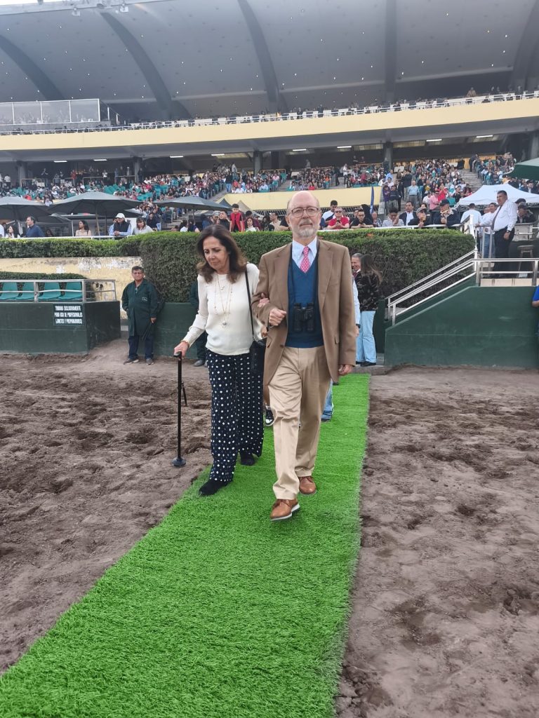 El Dr. Alfredo Gastañeta con su señora esposa quien va a la toma de la fotografía de su potranca SENSACION.