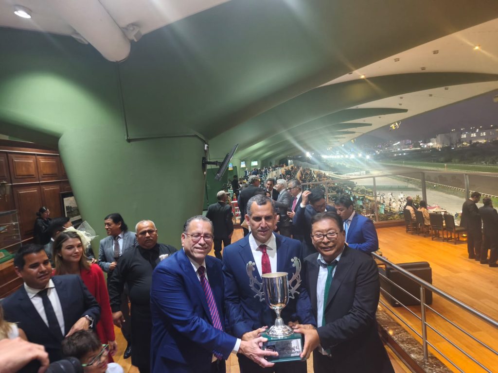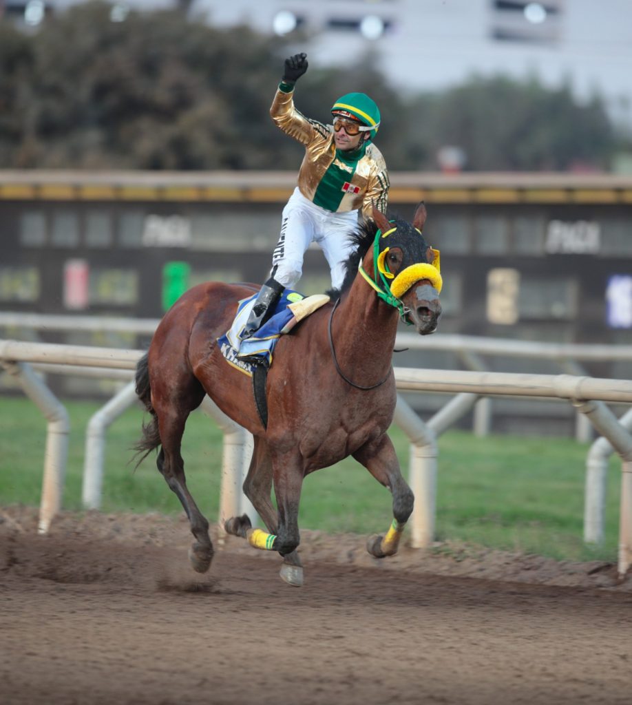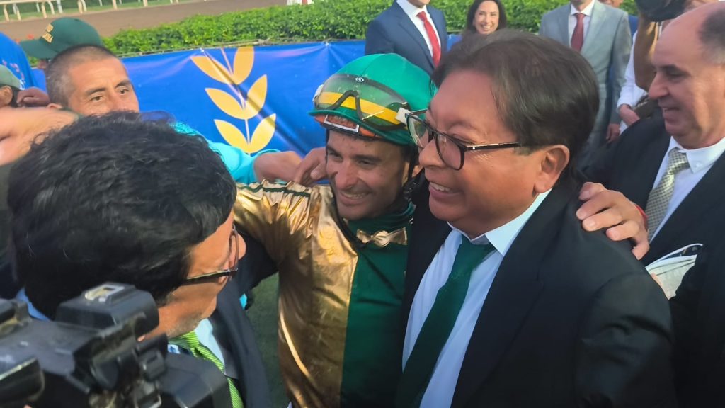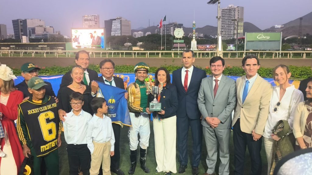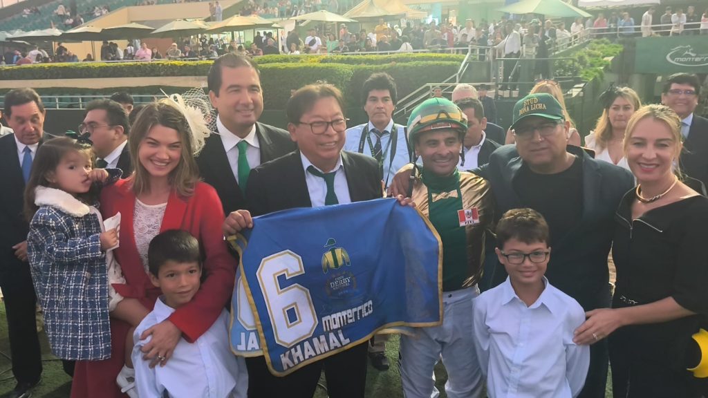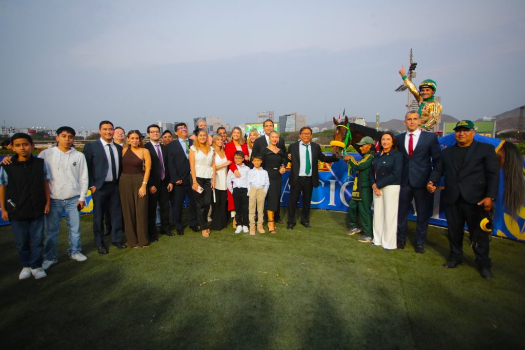 La alegría inmensa de todo el alto comando del stud «Doña Licha» encabezada por su propietario señor Oscar Peña Aparicio y familiares, luego de la conquista del Derby Nacional edición 2025, que se disputo en el Jockey Club del Perú, en el Hipódromo de Monterrico. Acompañan altas Autoridades de la Republica del Perú, como la señora Teresa Mera Gómez (Ministra de Comercio Exterior y Turismo del Perú) y el señor Danilo Chávez Abad (Presidente del Jockey Club del Perú)